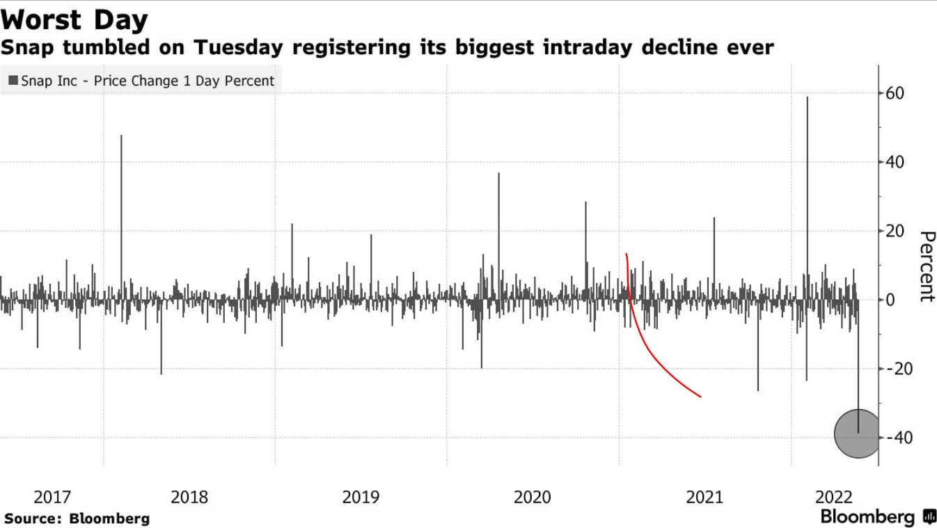 Alphabet Inc., la société mère de Google, a dégringolé de 5 % le 24 mai après que Snap Inc. a revu à la baisse les prévisions émises il y a un mois à peine, invoquant la détérioration des conditions macroéconomiques et suscitant des inquiétudes quant à une baisse généralisée de la publicité numérique. L'entreprise a annoncé qu'elle n'atteignait pas ses objectifs de croissance des revenus pour le trimestre. Le PDG Evan Spiegel a l'intention de contrôler les dépenses de l'entreprise et n'embauchera que 500 nouveaux employés d'ici fin 2022, un chiffre nettement inférieur aux 2 000 travailleurs embauchés en 2021. Le plan présenté ressemble à ceux publiés précédemment par Meta Platforms et Twitter, qui réduisent également leurs coûts cette année. "Nous pensons qu'il est probable que le chiffre d'affaires et l'EBITDA ajusté seront inférieurs à la fourchette basse de nos prévisions pour le deuxième trimestre 2022", a déclaré le PDG Evan Spiegel. "Le premier trimestre 2022 s'est avéré plus difficile que prévu" et "Bien que notre chiffre d'affaires continue de croître d'une année sur l'autre, il augmente plus lentement que ce que nous avions prévu à ce moment", a-t-il également noté. Les nouvelles rapportées par Snapchat se sont déjà répercutées sur le marché et ont fait pression sur d'autres valeurs technologiques notamment Meta Platforms, Twitter et Google.